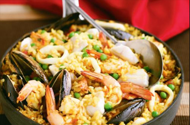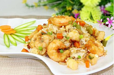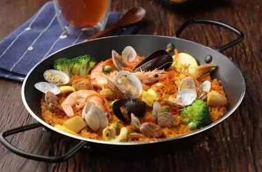 1.起油锅,烧热,以橄榄油将洋葱丁、西芹丁与蒜末以中火炒香,再加入所有的海鲜材料以中火拌炒。
