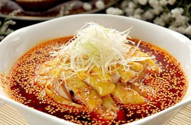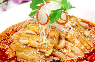 凉鸡为云南楚雄地区元谋县城的当地产品,具有近百年的历史。其中在对凉鸡的选择上相当考究,以未生蛋或未啼鸣的仔鸡为佳。将仔鸡宰杀后,去净鸡毛,放开鸡膛洗净后,以整只鸡置于锅中,慢慢以清水烫之,但水不宜煮沸,边煮边放清水,待鸡皮明显萎缩,捞出冷却后切块,辅以香料即为肉鲜味美的凉鸡。
