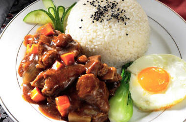 盖浇饭是一种古老的汉族小吃。属于西北甘肃地区叫法,东北叫烩饭,广东叫碟头饭,还有的地方只是叫咖喱土豆饭,咖喱鸡饭,麻婆豆腐饭,以此类推这样子,其实都是菜和饭放在一个盘子里吃,菜浇在饭上,由此称作盖浇饭。