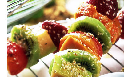 料理秘诀:水果串加热时要掌握好火候,使其表面略微焦黄即可,这样水果中才会依然保持多汁。