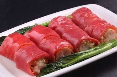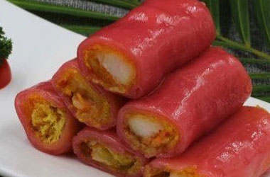 5、石磨红米鲜虾肠培训加工的工艺步骤;
