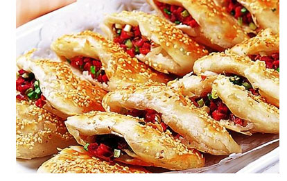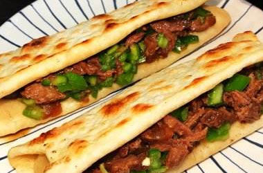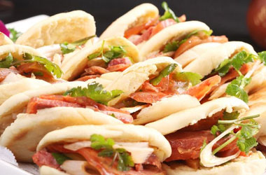 驴肉火烧的系统制作,包括驴友烹制、面皮的制作等。