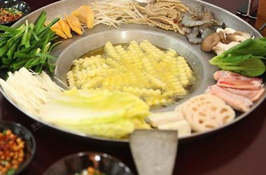 烙锅贵州特色菜品特色香辣爽口,味道奇香,开胃可口,油大不腻,烙锅每一个过程都非常重要,辣椒面的配制要控制好比例,烙制蔬菜与肉类时注意区分火候。烙锅味道的好坏取决于辣椒面。所以辣椒面是关键。烙锅营养价值高、营养丰富。